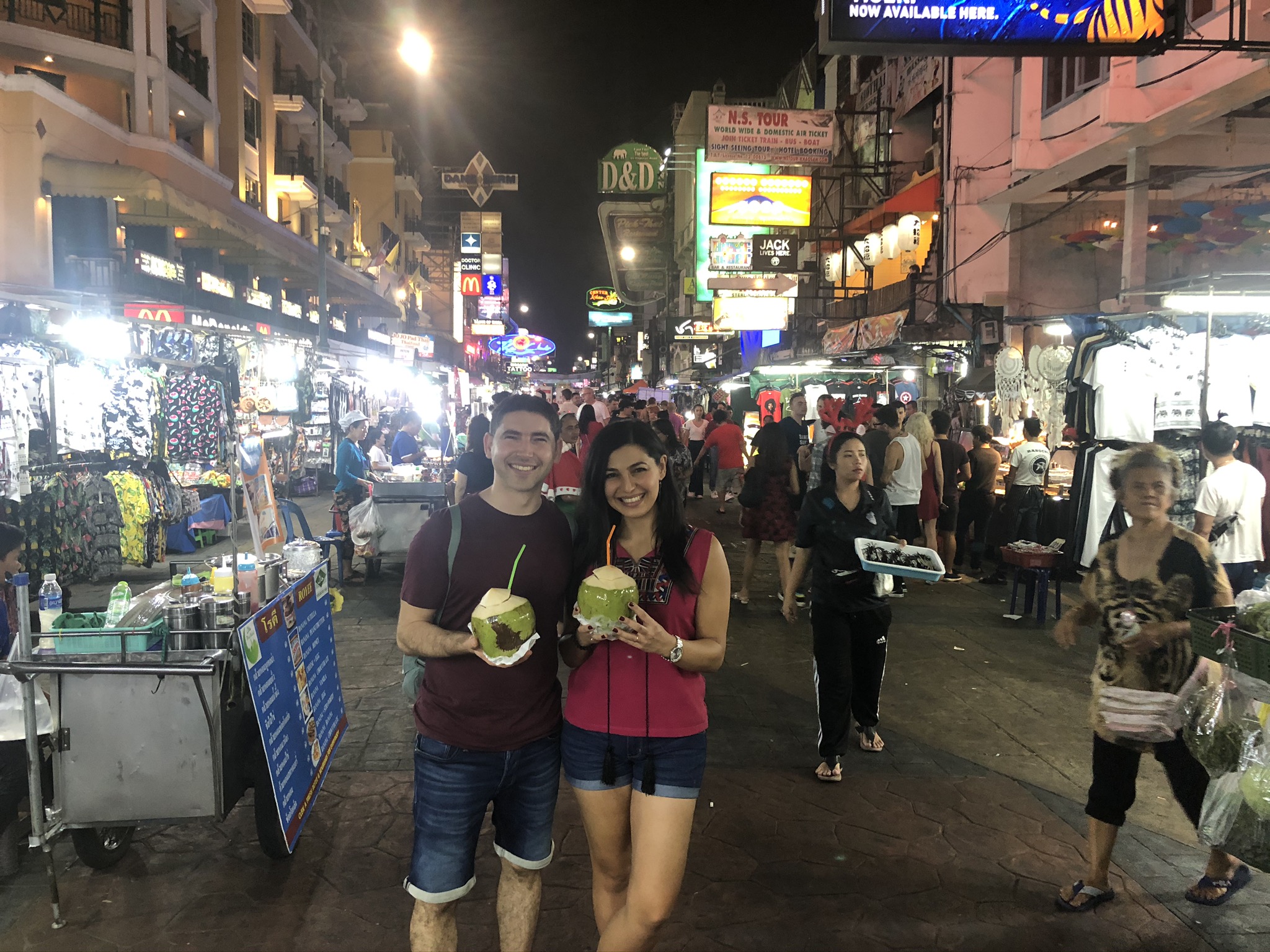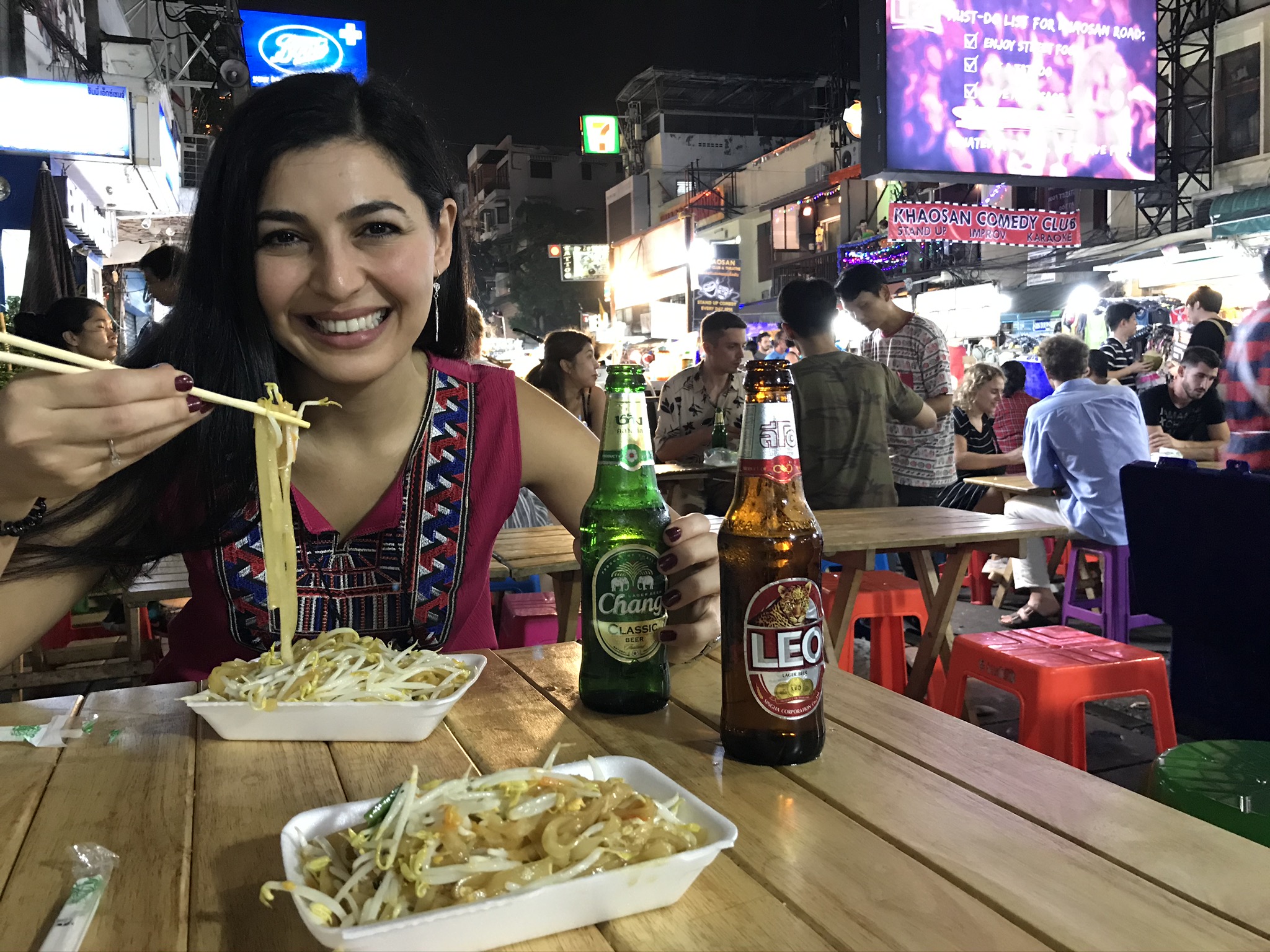 Khao San Road, akşam 7’ye kadar araç trafiğine açık olup, akşam 7’den sonra sadece yaya kullanımına sunulan, sokak lezzetlerinin her türlüsünü (börtü, böcek de dahil J ) barındıran, gece kulüpleri, barlar ve canlı müziklerle akşam ziyaret edilmesi gereken hareketli ve turistik bir eski İstiklal Caddesi türevi. Pad Thai, Coconut suyu, Kızarmış Muzlu Pankek (Banana Roti) gibi Tayland’a özel lezzetler ve egzotik meyveler denemek için ideal.